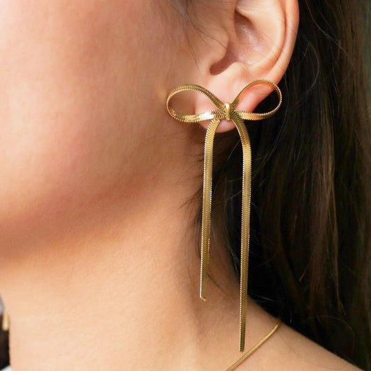 Dainty Bow Gold Danglers
